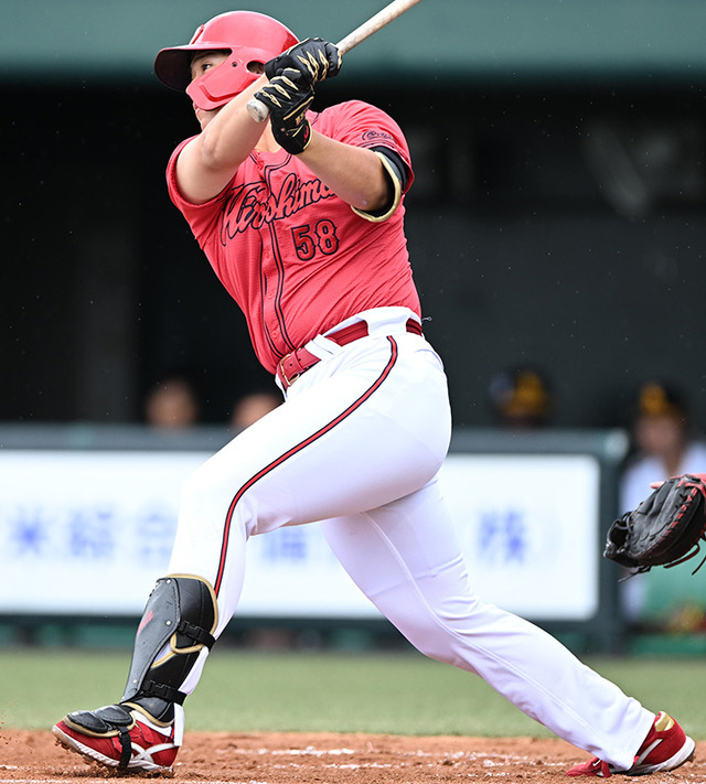カープ仲田侑仁、杉原から特大ホームラン!吉田正尚の助言で打撃フォーム改造
