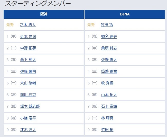 6(左) 前川 右京 8(遊) 小幡 竜平