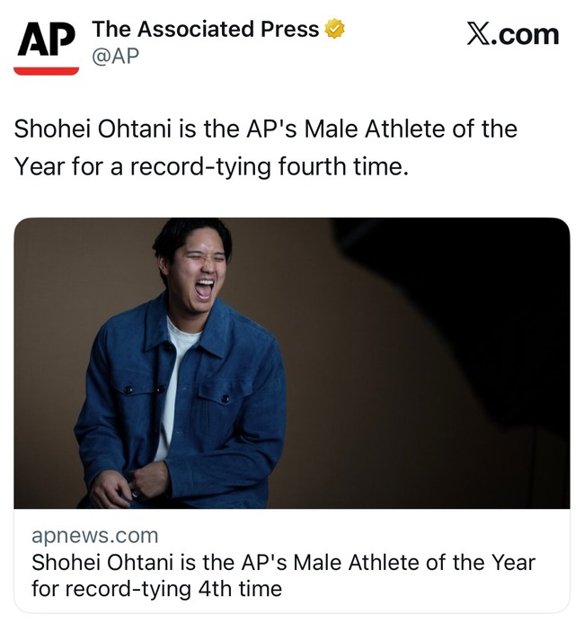 大谷翔平さん、アメリカ全体で2025年最強アスリートに選出されてしまうwwwww[...]