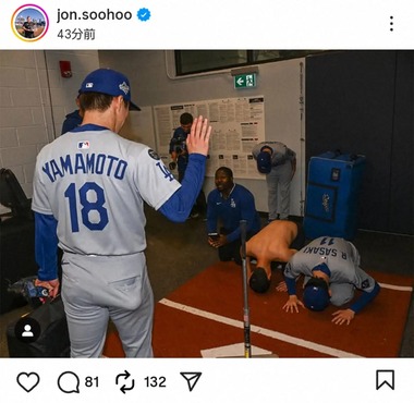佐々木朗希さんが山本由伸に土下座 ドジャースカメラマンが衝撃写真を公開