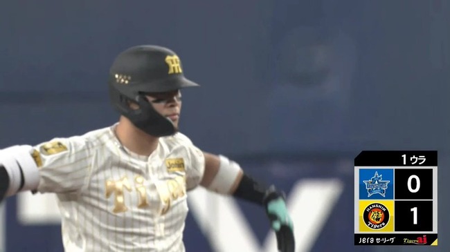 阪神、1回裏1アウト一二塁から佐藤輝明のタイムリーツーベースで先制!!!!!!![...]