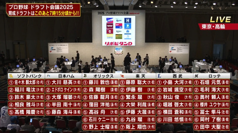 プロ野球ドラフト会議2025、全球団の支配下指名が終了