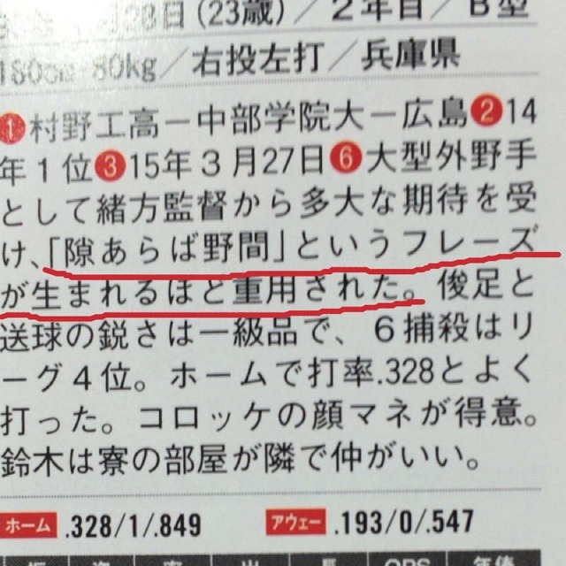 選手名鑑「隙あらば野間」