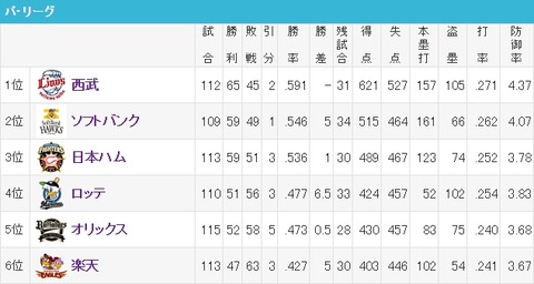 パ・リーグの優勝球団、ガチでわからなくなる…