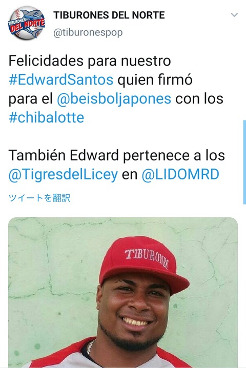 ロッテがエドワードサントスいう外国人を獲得か…?