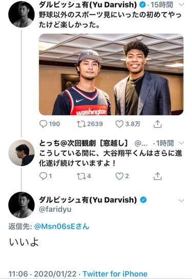 ウィザーズ ・八村塁 ダルビッシュ先輩の訪問に感激!野球談議に花「投手が夢だった[...]