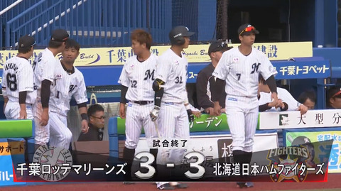 ロッテ対日本ハムは3-3で引き分け ロッテ9回裏に2点をとり同点に追いつく