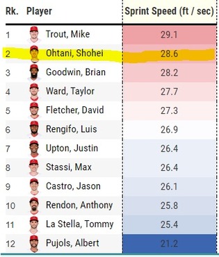 大谷翔平、MLBDH部門でトップクラスの脚力