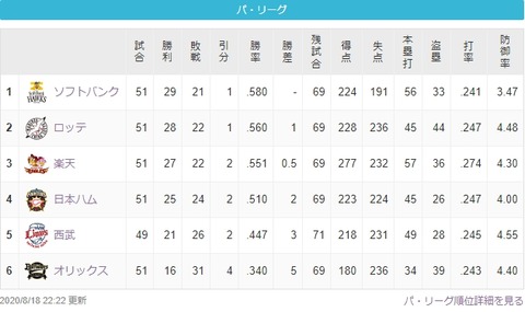 西武2軍スタメン 先発:十亀(2020.8.19)