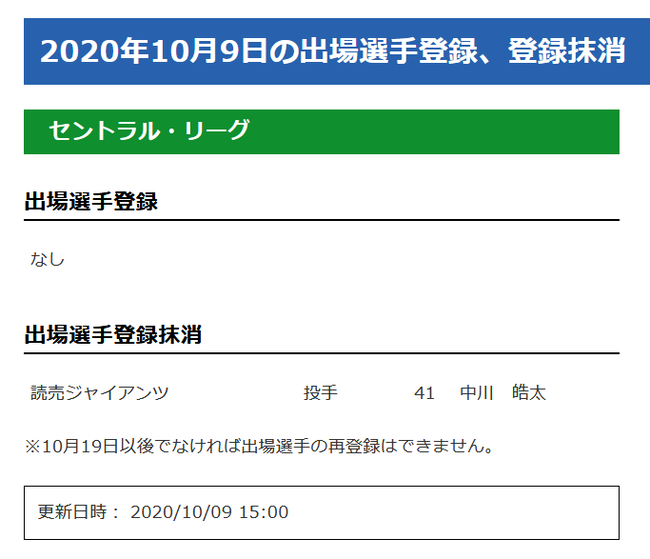 三上が登録抹消