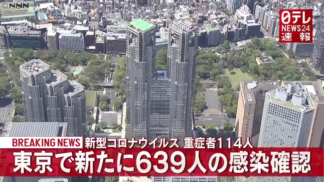 東京都で新たに639人の感染確認 新型コロナウイルス